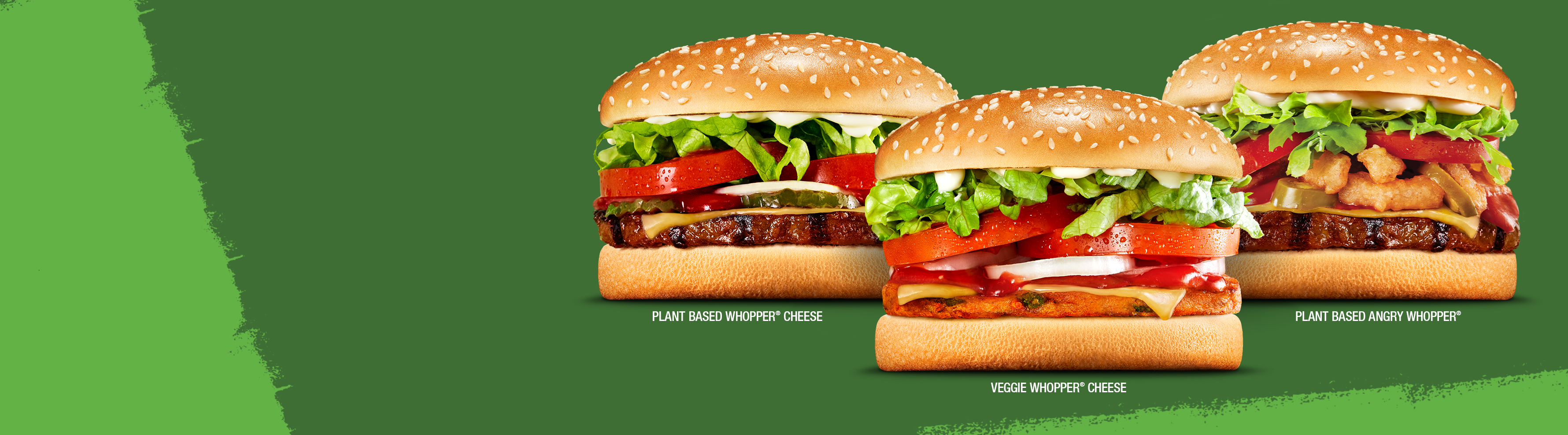 Try our tasty Veggie Whopper® Cheese (with the veggie patty made from corn, capsicum and carrot) or enjoy the Plant-Based Whopper® Cheese, featuring a patty made from plants, and enjoy the flame-grilled, smoky BBQ flavour of a Whopper®