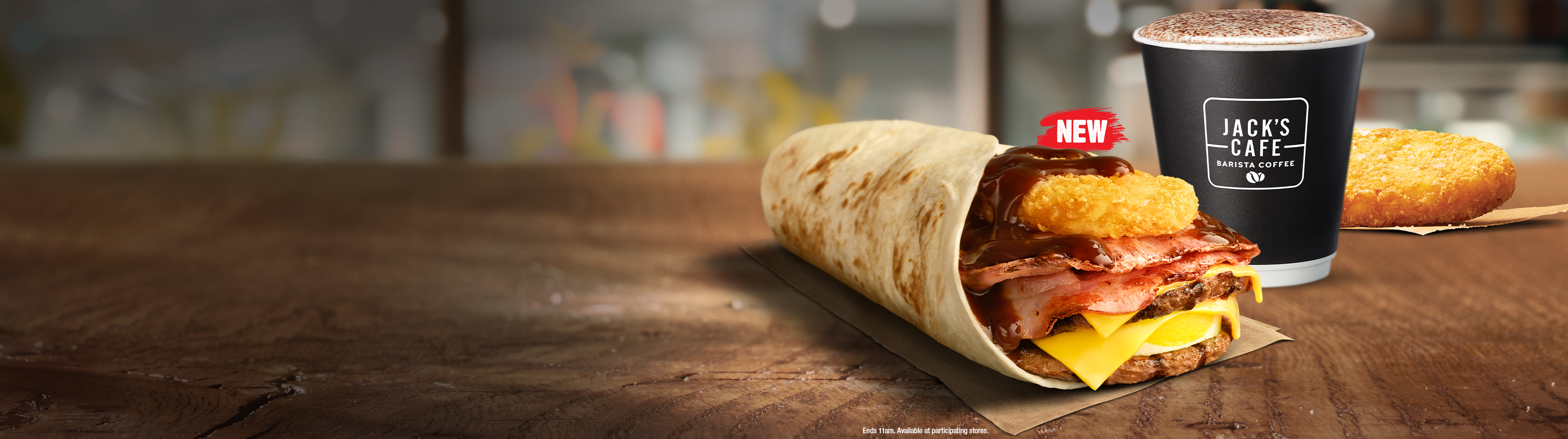 Start your day with one of our delicious breakfast options from Hungry Jack's. Freshly cracked cage-free eggs, premium eye bacon in our turkish brekky rolls, wraps, toasties, pancakes and crunchy, golden hash browns. Rise 'n shine.